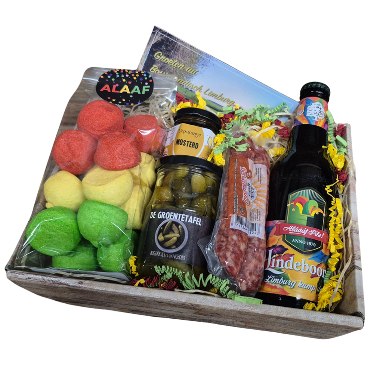 We verpakken het carnavalspakket in zijn geheel in een stevige omdoos zodat deze klaar is voor verzending. U kunt dit pakket naar ieder willekeurig adres in Nederland, Belgie of Duitsland laten verzenden. Ook kunt u, geheel gratis, een handgeschreven kaartje laten toevoegen. U kunt onder het kopje opmerkingen tijdens het bestelproces een boodschap naar keuze invullen.