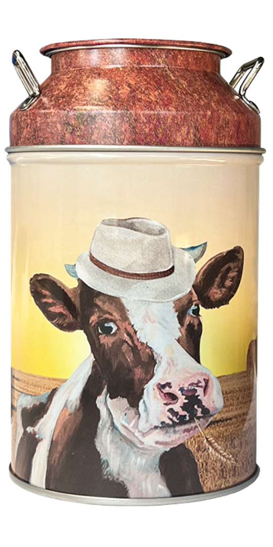 Deze unieke spaarpot, in de vorm van een melkbus, gevuld met heerlijke ambachtelijke zoute koeiendrop is een origineel cadeau om te geven en te krijgen. Een mooi themaproduct om cadeau te geven aan een echte dropliefhebber en/of een echte koeienvriend. Een product met een dikke knipoog naar het boerenleven. Ontdek ook onze andere producten uit de serie boerderij lekkernijen zoals de koeienrepen en de koeien melkverpakkingen.