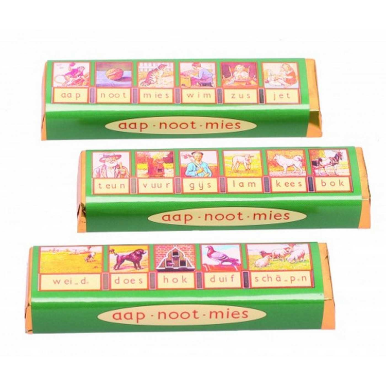 Deze heerlijke ouderwetse chocoladereep met hazelnootvulling in mooie Aap noot Mies wikkel is niet alleen erg lekker, maar zeker ook een lust voor het oog. De reep roept herinneringen aan vroeger op. Deze reep is geen Limburgs streekproduct, maar wel een ambachtelijk en nostlgisch product met een dikke vette knipoog naar het beroemde leesplankje. Ontdek ze snel.