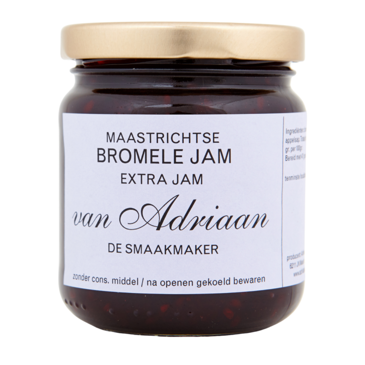 Deze jam, gemaakt van bramen (bromele), wordt ambachtelijk geproduceerd bij Adriaan de Smaakmaker te Maastricht. Bij Adriaan de Smaakmaker wordt de bromele jam traditioneel geproduceerd zonder gebruik van conserveringsmiddelen. Ontdek ook de andere smaken zoals kroonsele sjem, abrikozen sjem of vijgen jam.