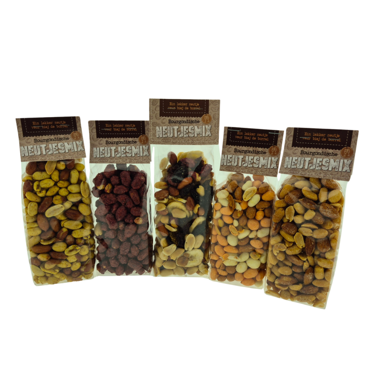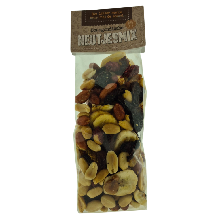 Deze huismix is een zoete mix van pinda's, rozijnen, suikerpinda's en gedroogde bananen. Kortom "ein lekker neutje veur bie de borrel". Positieve eigenschap van deze mix is dat deze zeer vezelrijk is. Kortom: lekker en verantwoord snacken.