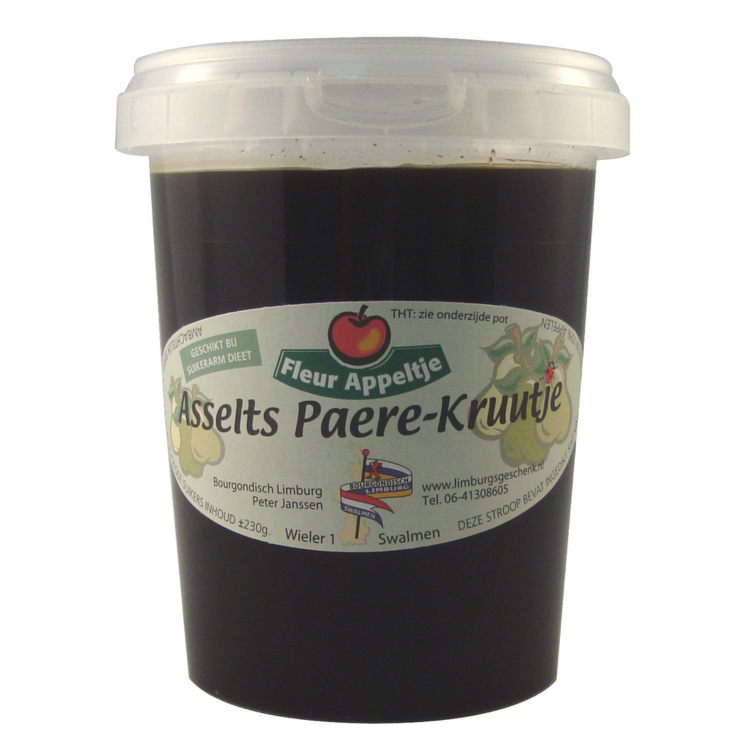 Asselts paere kruutje is een stroop op basis van peren (75%) en appels (25%), zonder enige toevoeging van geur-, kleur- en smaakstoffen. Een stroop die speciaal voor Bourgondisch Limburg in het Belgisch Limburgse Borgloon op authentieke wijze wordt bereid. Dit gebeurd op traditionele wijze in koperen ketels. Door de toevoeging van appels ontstaat er een hoger gehalte aan pectine waardoor de stroop makkelijk smeerbaar is op de boterham of roggebrood. Kortom een heerlijk puur fruitige perenstroop.